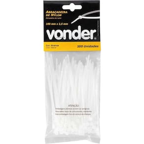 Aplicação: Indicada para fixar e organizar fios, cabos, entre outros. Também conhecida no mercado como: enforca gato, fita de nylon e abraçadeira plástica. A abraçadeira VONDER é indicada para uso interno e externo.