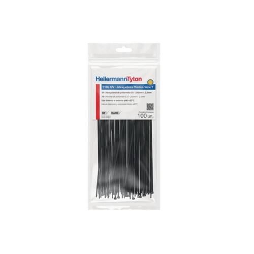 Marca: HELLERMANN Material: Nylon Cor: Preto Dimensões: 200X2,5mm Quantidade por pacote: 100 abraçadeiras Aplicações comuns: Organização de cabos elétricos, fixação de tubos, uso doméstico e industrial, entre outros. Abraçadeiras para aplicações em temperaturas elevadas de até +150C (5000h) e +195C (500h); Disponíveis em diferentes tamanhos a fim de suprir diversos diâmetros de amarração; Baixa emissão de fumaça em caso de incêndio; Serrilhado interno permite forte amarração em feixes; Fácil aplicação tanto manualmente quanto com ferramenta de aplicação; Temperatura de utilização (a longo prazo) até +130C. Garantia: 1 ano