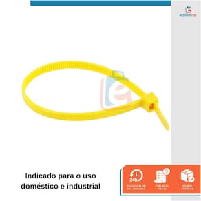 A Abraçadeira Nylon é ideal para o uso doméstico e industrial; prender fios, cabos, mangueiras, fixação de chicotes, lacre de embalagens, cabos de redes e outros. Fabricada em nylon é resistente à água e óleo, temperatura, intempéries climáticas e estabilidade dimensional mesmo sob o efeito do calor.
