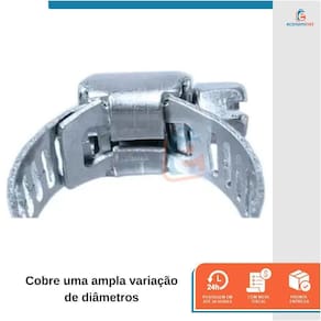 A Abraçadeira Rosca Sem Fim é ideal para a maioria das utilizações industriais e desenhadas para cobrir uma ampla variação de diâmetros, podendo com isto, compensar variações de diâmetros dos bocais e mangueiras. Indicada para o uso doméstico e industrial, são utilizadas para obter a máxima performance e segurança na fixação de tubos e mangueiras.