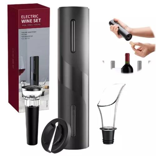 Tipo: Abridor De Vinho Elétrico Quantidade: 1 Un Cor: Preto Material: ABS + liga Bateria: usa 4 pilhas NORMAIS ou RECARREGÁVEIS não inclusas Tamanho do produto: 24 x 5 cm Peso: 280 g