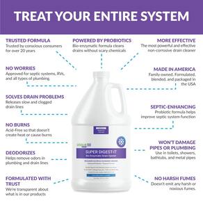 Unique Super Digest-It — Abridor de drenagem bioenzimático livre de ácido e removedor de entupimentos para uso doméstico (3,785 ml)