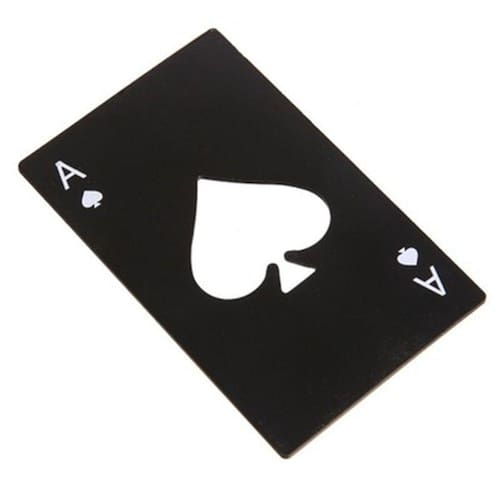 Demonstre estilo e bom gosto com esse abridor de garrafas carta de baralho As de Espadas feito em aço inoxidável.