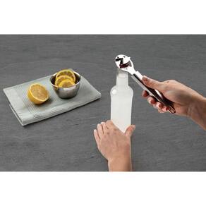 Uso 2 em 1: abre garrafas e latas, trazendo mais praticidade à cozinha.