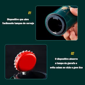 Abridor de Garrafa Magnético Automático para Cerveja e RefrigeranteAbra garrafas de cerveja ou refrigerante em menos de um segundo! Com o Abridor de Garrafa Magnético Automático, basta colocá-lo na tampa da garrafa, pressionar para baixo e levantá-lo. A tampa será facilmente removida, tornando a abertura das garrafas mais prática e rápida. O abridor possui um ímã acoplado para fixar melhor na tampa, evitando quedas indesejadas.Especificações Técnicas:- Modelo: Abridor de Garrafa Automático Magnético- Material: Plástico, Metal, Ímã- Dimensões Aproximadas: 8cm (Altura) x 5cm (Diâmetro)- Peso Aproximado: 60gItens Inclusos na Embalagem:- 01x Abridor de Garrafa Automático MagnéticoGarantia e Satisfação do Cliente:Oferecemos uma garantia de 3 meses para o produto. Além disso, o cliente tem um prazo de 7 dias para testar o abridor de garrafas, podendo devolvê-lo sem custo algum caso não esteja satisfeito.Aproveite essa oportunidade e adquira agora mesmo o Abridor de Garrafa Magnético Automático para tornar suas experiências de abrir garrafas mais práticas e rápidas!