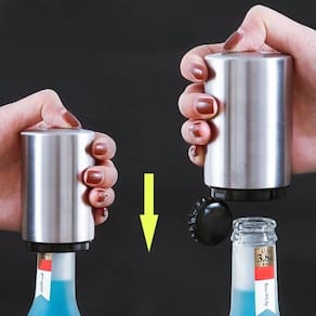 Para utilizar o Abridor Magnético é só inserir o abridor no topo da garrafa e retirá-lo logo em seguida, em segundos o imã que contém no abridor remove a tampa abrindo a garrafa.