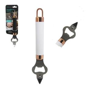 Abridor de lata / garrafa de inox com cabo preto/branco rose gold casa onze 18cm na cartela