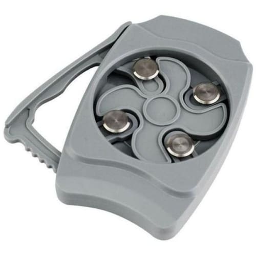 --- Modo de Usar: --- 1. Segure pela parte superior ou inferior da lata não pegue no centro da lata ; 2. Abra a alça e encaixe o abridor em cima da lata; 3. Aperte a alça e gire para cortar; 4. Retire o abridor e aperte lentamente para destacar a parte superior.