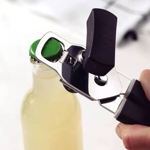 Abridor de Latas e Garrafas Tramontina Utilitá Inox com Cabo Polipropileno Preto.