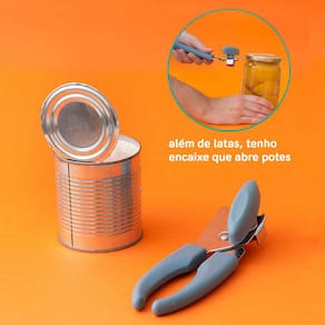 ":: Esse é o abridor de latas da OIKOS, aquele parceiro que protege contra acidentes ao abrir latas e garrafas. :: Abre latas: basta encaixar o abridor na beirada, apertar e girar a manivela. :: Sem rebarbas: por abrir latas uniformemente, gera uma borda bem lisa - sem aquelas rebarbas pontudas que machucam, sabe? :: Abre garrafas: é só encaixar na garrafa a ponta que fica ao lado do furo passante, abrir e brindar. :: Ergonômico: seu suporte tem um toque suave que encaixa confortavelmente em qualquer mão."