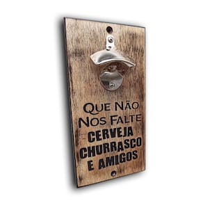 Abridor de Parede - Cerveja Churrasco e Amigos 25x12 Abra sua CERVEJA com ESTILO e transforme seu Ambiente em um lugar mais Confortável e Divertido com esse abridor. E ainda tem mais:
