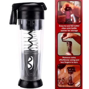 Descrição:A ação TWIST-AND-PULL nunca quebra a rolha.A alça dobra para baixo para armazenamento.Gire no sentido horário para remover a rolha da garrafa de vinho. Gire no sentido anti-horário para liberar a cortiça para descarte.Uma nova maneira de abrir uma garrafa de vinho sem esforço.DESIGN ERGONÔMICO DURÁVEL COMPACTO.Abridor de vinho com design elegante e engrenagem epicíclica para operação simples e sem esforço.Funciona bem para pessoas com dores nas articulações e artrite.Sinta o conforto na mão em comparação com os abridores de saca-rolhas tradicionais.MAIS FÁCIL DE OPERAR. Abre garrafas de vinho com menos força do que o necessário para abridores de vinho típicos e requer apenas dois dedos para girar a maçaneta.GRANDE PRESENTE PARA OS AMANTES DE VINHO. Seu deve ter acessórios de vinho.Pequeno e leve.Vem com cortador de folha clip-in.Saca-rolhas fechado.Bom para viagens, festas, piquenique e presentes.O Smart Touch Wine Opener remove rolhas sem esforço usando apenas dois dedos. Seu cortador de papel alumínio fácil de usar se encaixa no abridor de garrafas para armazenamento.Característica:Puxa a rolha de vinho enquanto você torceEngrenagem epicíclica elegantemente projetada para operação simples e sem esforçoAbre garrafas de vinho com 75% menos força do que o necessário para abridores de vinho típicos e requer apenas dois dedos para girarA ação de torcer e puxar nunca quebra a rolhaVem com cortador de papel alumínioA alça dobra para baixo para armazenamentoPequeno e leve SacaConteúdo da caixa1 x Twist n Pull smart touchImpressione os convidados da sua festa com o abridor de vinho fácil e elegante Twist 'N Pull Smart Touch. Este abridor leve é projetado para fornecer abertura simples para entretenimento sofisticado. Basta segurar e girar - este abridor fácil abre garrafas de vinho com 85% menos força necessária para abridores típicos. Você só precisa de dois dedos para girar! Chega de se preocupar com rolhas quebradas - abra suas garrafas de vinho como um profissional com o abridor de garrafas de vinho Twist 'N Pull Smart Touch Easy Touch.Características:Puxa a rolha de vinho ao girar a maçanetaA alça dobra para baixo para armazenamentoClipes de cortador de papel alumínio fáceis de usar no abridor de garrafas para armazenamentoAbre garrafas com aprox. 85% menos força do que abridores típicosA ação de torcer e puxar nunca quebra a rolhaPequeno e leveSaca-rolhas fechado Marca: Yeet