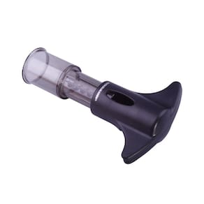 Saca rolhas modelo borboleta, seu corpo é fabricado em plástico e o espiral em metal. A parte superior possui um corta lacre que auxilia na abertura da garrafa.