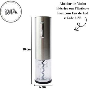 ABRIDOR DE VINHO ELÉTRICO EM PLÁSTICO E INOX COM LUZ DE LED 18CM - 4431