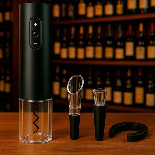 Abridor de vinho elétrico com cortador de folha, derramador e rolha a vácuo. Remove rolhas em 5 a 7 segundos. Mantém a garrafa de vinho aberta fresca por 7 dias com a rolha a vácuo.Vendido e entregue por Olist