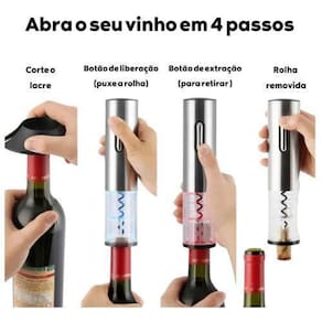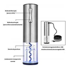Acompanha: - saca rolha elétrico - corta cápsula - cabo com entrada usb Tamanho 3 x 8 x 3 lxaxp Marca: Bbg Ean: 3325221100429