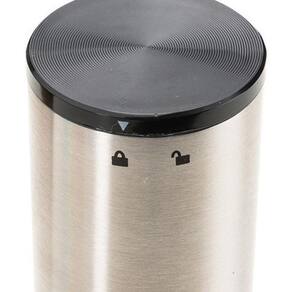 Na área superior do saca rolhas há um compartimento para pilhas com desenhos indicativos de abertura e trava, abra a tampa conforme exibido e insira 4 pilhas ALCALINAS AA para o funcionamento do produto (pilhas não inclusas)