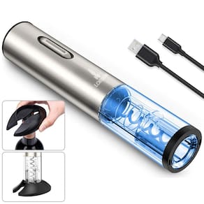 O Abridor de Vinho Saca Rolha Elétrico, com bateria recarregável, é um item essencial no bar ou cozinha, pois garante que você abra qualquer garrafa de forma segura e fácil, sem acidentes ou imprevistos. Retira as rolhas com maior facilidade sem necessidade de fazer força e correr risco de quebra da garrafa. Basta apertar um botão. Possui também luzes led indicadores de operação, o que torna o abridor ainda mais bonito.• Fácil de usar• Sem fio, funciona com bateria recarregável e acompanha cabo carregador USB• Ergonômico, encaixa-se perfeitamente na palma das mãos• Desenhado para se encaixar em, praticamente, qualquer tipo de garrafa de vinho tradicional• Tempo aproximado para abertura de cada rolha: 7 segundos• Vem com uma base que também é um corta-lacre• Capacidade: abre mais de 30 garrafas com a bateria completamente carregada• Tempo de recarga da bateria: 8hMarca: LorbenMaterial: Plástico e aço inoxCor: PrataVoltagem: Bivolt (110V ou 220V)Tensão nominal: 6VInclui:1 Abridor elétrico1 Base1 Carregador USBTamanho do produto: 19,5x4,5x4,5cmPeso do produto: 315gTamanho da embalagem: 25x10,5x8,5cmPeso da embalagem: 425gCódigo do produto: 883Fotos meramente ilustrativas. Tonalidades podem variar.