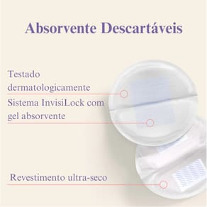 Absorventes descartáveis para seios Lansinoh com gel de polímeros que absorvem 20x mais e revestimento ultra-seco. Possui design anatômico e duas fitas adesivas que mantêm o absorvente no lugar e absorve o excesso de leite. Indicado para Fluxo intenso.