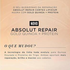 Apresentamos o condicionador L'Oréal Professionnel Absolut Repair Gold Quinoa 1,5L, o aliado perfeito para cabelos danificados. Descubra como conquistar cabelos com aparência mais saudável, luminosos e com um toque sedoso incrível. Restauração Intensiva com Quinoa e proteínas O Condicionador L'Oréal Professionnel Absolut Repair Gold Quinoa é formulado com o poder da Quinoa e Proteínas, que atuam em sinergia para reduzir os danos na superfície do cabelo. Essa poderosa combinação desembaraça os fios e ajuda a reestruturar sua superfície, proporcionando cabelos com mais brilho, resistência e um toque leve. Luminosidade e Toque Sedoso Com o Condicionador Absolut Repair Gold Quinoa, seus cabelos ganharão uma aparência mais saudável, luminosa e com um toque sedoso incrível. A fórmula do condicionador contribui para restaurar a superfície dos fios, deixando-os com um aspecto revitalizado e cheio de brilho. Modo de Aplicação para Resultados Eficientes Espalhe o condicionador de maneira uniforme por todo o cabelo após a lavagem, enquanto os fios ainda estão úmidos e secos com uma toalha. Deixe o produto agir por 2 a 3 minutos e, em seguida, enxágue completamente. É importante evitar o uso excessivo do condicionador, pois a aplicação adequada dos ingredientes ativos é fundamental para obter resultados satisfatórios e evitar desperdício. O resultado que você espera Ao utilizar o Condicionador L'Oréal Professionnel Absolut Repair Gold Quinoa 1,5L, você notará que seus cabelos ficarão desembaraçados, com até 77% mais reparação, 7x mais brilhantes e com um toque suave, especialmente quando combinado com a linha completa. Para potencializar ainda mais os benefícios de desembaraço e brilho para seus cabelos danificados, experimente também o shampoo L'Oréal Professionnel Serie Expert Absolut Repair Gold Quinoa + Protein. Cuide dos seus fios com esse tratamento poderoso e desfrute de cabelos deslumbrantes e saudáveis todos os dias. Marca: Não Informado Ean: 7899115200176