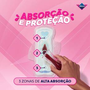 DESCRIÇÃO: Libresse é uma marca com uma linha completa de produtos para o ciclo menstrual. Acreditamos que o ciclo menstrual é único. Vamos surpreender e transformar a relação com a sua menstruação, oferecendo um lugar seguro também para a higiene íntima diária. São diversas opções de acordo com a necessidade de cada pessoa que menstrua, afinal seu corpo suas regras. DIFERENCIAIS: Um produto de 23cm de comprimento com uma tecnologia exclusiva chamada CUR V com 3 ZONAS DE ABSORÇÃO e ABAS ASSIMÉTRICAS GARANTINDO AJUSTE PERFEITO AO SEU CORPO e aos movimentos e entregando máxima proteção de todos os ângulos. Além das zonas de absorção, possui canais de distribuição que absorvem de maneira instantânea o fluxo evitando vazamentos. Pensando no conforto, produto com cobertura suave que permite a respiração da Zona V mantendo-a sempre limpa, seca e a sensação de frescor e proteção durante todo o dia. Produto dermatologicamente testado.