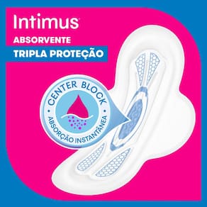 A Intimus® pode te ajudar a deixar sua zona íntima mais seca e protegida! O Absorvente Tripla Proteção conta com Center Block, auxiliando na absorção instantânea do seu fluxo. Sem contar que ainda absorve 2 vezes mais rápido e distribui por todo absorvente, prevenindo vazamentos. Perfeito para que você se sinta seco enquanto usa. E aí? Que tal conferir e comprovar? O Absorvente Intimus® Tripla Proteção tem controle de odores, é dermatologicamente testado e tem 100% de materiais respiráveis.
