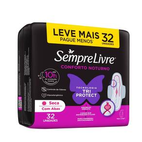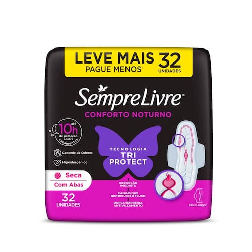 Sempre Livre Conforto Noturno é um absorvente higiênico que garante até 10 horas de proteção contra vazamentos, sendo ideal para fluxos intensos devido à sua capacidade de absorção e gel superabsorven