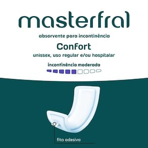 Absorvente Geriátrico Pós Operatório, Pós Parto Sem Abas Masterfral Confort 20un Evergreen O Absorvente Masterfral foi desenvolvido especialmente para oferecer máxima absorção, suavidade e conforto. Unissex, é indicado tanto para incontinência urinária moderada quanto para o pós-parto e pós-operatório. Possui matéria-prima hipoalergênica e aloe vera, que ajudam na prevenção de assaduras, proporcionando cuidado extra para a pele. Sua tecnologia antiodor garante discrição, neutralizando odores indesejados. A fita adesiva permite uma fixação segura na roupa íntima, oferecendo liberdade de movimento. O absorvente Masterfral também é uma ótima opção para uso hospitalar, garantindo conforto e praticidade em qualquer situação. Dermatologicamente testado, este absorvente anatômico é gentil com a sua pele e proporciona um ajuste confortável, permitindo que você se mova com liberdade e sem preocupações. Se adapta perfeitamente ao seu corpo, oferecendo uma sensação de bem-estar e conforto em cada uso. Principais Características: - Máxima Absorção - Sem Abas - Ideal para Incontinência Urinária, Pós Parto e Pós Operatório - Previne Assaduras - Canais Antivazamento - Formato anatômico se adapta perfeitamente ao corpo - Descartável - Uso diário - Antiodor - Hipoalergênica - antibacteriana - Respirável Especificações Técnicas: - Conteúdo da embalagem: 1 pacote com 20und - de 30 dias contra defeito de fabricação - EAN: 7896064445245 - Código do fabricante: 4424 - Marca: Evergreen Imagens meramente ilustrativas, as cores e estampas podem variar de acordo com o lote do fabricante. Marca: Não Informado