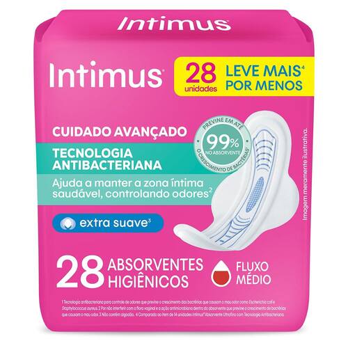 Absorvente Intimus Toda Renovada Dia - 28 unidades O Absorvente Intimus® Toda Renovada Dia promove a sensação de frescor e limpeza prolongada, com microesferas que neutralizam odores e até 100% de pro Ean: 7896007551026