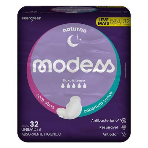 o Absorvente Modess Conta com Uma Cobertura Suave e Respirável, Perfeita Para Fluxos Menstruais Leves e Moderados, Além de Uma Excelente Proteção Contra Vazamentos. com Sua Tecnologia Antibacteriana e Antiodor, Você Se Sente Fresca e Confiante o Dia Todo.
