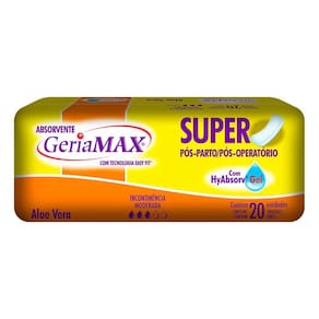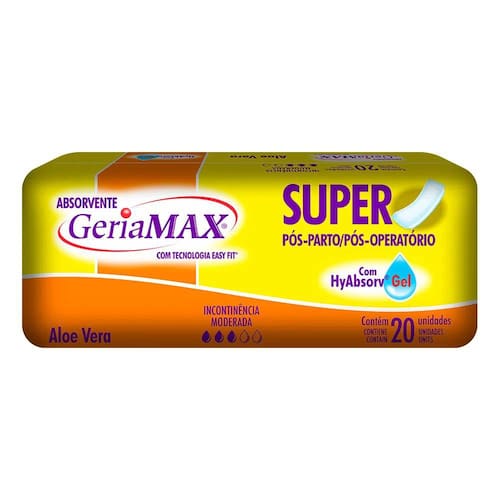 Absorvente para Incontinência Geriamax Os Absorventes Geriamax foram desenvolvidos especialmente para oferecer máxima absorção, suavidade e conforto. Indicado tanto para incontinência urinária moderada quando para o pós parto e pós operatório. Possui matérias-primas hipoalergênicas, cobertura suave, camada interna com alto poder de absorção e retenção de líquidos, HyAbsorv® Gel que absorve o fluxo transformando-o em cristais de gel, garantindo proteção e segurança. Contém: 1 pacote de Absorvente para Incontinência com 20 unidades Modelo: sem abas Indicação de uso: Incontinência urinária; Pós Parto e Pós Operatório Fluxo: Moderado