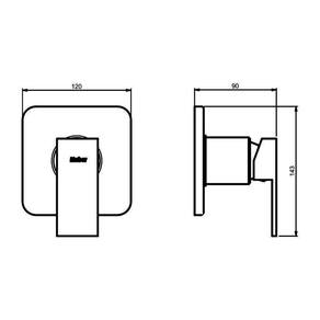 O acabamento para base monocomando de chuveiro da linha Axiom Slim possui acabamento pintado e pode ser instalado em bases de 1/2 e 3/4 de polegada, de alta e baixa pessão com padrão Meber ou similar. A linha Axiom Slim possui traços dispostos delicadamente, possui um desenho sofisticado e atemporal que harmoniza com ambientes requintados.