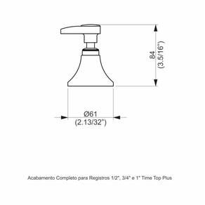 Acabamento leve, prático e moderno. Composição básica: liga de cobre e plásticos de engenharia. Acabamento superficial cromado que proporciona alta resistência à corrosão. Volante metálico em forma de alavanca que facilita a abertura. Fácil instalação. Modelo pequeno: para registros DN15 1/2 , DN20 3/4 e DN25 1 . Modelo maior: para registros DN32 1.1/4 e DN40 1.1/2 . Modelos disponíveis para registros base Deca, Perflex, Docol e Fabrimar. Garantia de 12 anos. Ean: 7896739020180