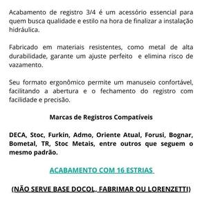 Transforme seu banheiro com um toque de sofisticação e modernidade. Dê um upgrade instantâneo ao seu ambiente com o Acabamento para Registro Quadrado Barcelona Preto Fosco, combinando design elegante e funcionalidade superior. Descubra os Benefícios que Fazem a Diferença: Design Moderno e Elegante: O acabamento quadrado preto fosco da linha Barcelona confere um visual contemporâneo e sofisticado ao seu banheiro ou lavabo. Compatibilidade Universal: Perfeito para bases de registros de 1/2, 3/4 e 1 polegada, adaptando-se a registros e gaveta. Ampla Compatibilidade de Marcas: Instale com tranquilidade em registros das marcas DECA, Stoc, Furkin, Admo, Oriente Atual, Forusi, Bognar, Bometal, TR e outras que sigam o padrão estria Deca. Alta Durabilidade: Fabricado em Liga de Cobre Metal de alta qualidade, garantindo resistência à corrosão e longa vida útil. Acionamento Versátil: Compatível com sistemas de acionamento convencional e 1/4 de volta, oferecendo flexibilidade de uso. Instalação Simples: Fixação na parede, com um processo descomplicado que você mesmo pode realizar. de 2 Anos: Tenha a tranquilidade de um produto com qualidade assegurada. Especificações Técnicas: Fixação: Parede Uso: Geral Material: Liga de Cobre Metal Acionamento: Convencional ou 1/4 de Volta O Kit inclui: 1 Peça de Acabamento Quadrado Preto Fosco Barcelona 1 Chave Allen para instalação Atenção: Não compatível com bases de registros das marcas Docol, Fabrimar e Lorenzetti. Verifique a compatibilidade antes da compra. Não espere mais para renovar seu espaço Adquira agora o Acabamento Registro Quadrado Preto Fosco Barcelona e desfrute de um banheiro com estilo e qualidade impecáveis. Marca: Não Informado