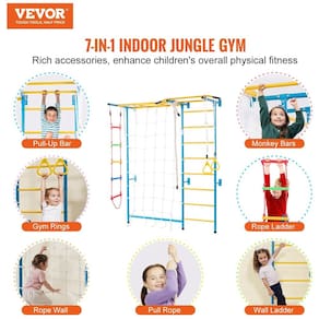A Academia de Escalada Multifuncional da VEVOR para crianças combina uma barra de pullup, argolas de ginástica, escada de corda e outras atividades de brincadeira para ajudar as crianças a se exercitarem, melhorarem a coordenação e se divertirem. Este conjunto de escalada indoor foi projetado para fortalecer as crianças fisicamente, melhorar a coordenação motora e incentivá-las a enfrentar desafios. Superar medos e tentar novas escaladas promove coragem, confiança e crescimento pessoal. Feito de aço carbono de alta resistência, este conjunto de academia indoor para crianças é resistente a arranhões e desgaste, garantindo estabilidade aprimorada e longa vida útil. A superfície resistente à ferrugem é fácil de limpar com um pano úmido. Com capacidade de peso máxima de 100kg, até mesmo adultos podem desfrutar da academia de escalada indoor, tornando-a perfeita para brincadeiras em família e promovendo união e atividade física divertida juntos. Fácil de instalar, nossa academia infantil é simples e rápida de montar com um guia de instalação detalhado. Pode ser montado em quartos de crianças, centros de aprendizagem precoce ou pré-escolas, tornando-o versátil para uma variedade de espaços.