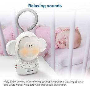 PRODUTO INTERNACIONAL. Tenha a tranquilidade que você e seu bebê merecem, mesmo em movimento, com o VTech BC8211 Myla, a máquina de som portátil em formato de macaco.