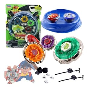Ação 5d: kit 4 beyblades metal + 2 lançadores + 1 arena Kit beyblade com arena inclusa Nela contem: 4 piões com 2 lançadores com as cordas 8 ponteira de plásticos 2 chaves regulagem 1 arena de plástico 20 cm azul ou vermelho Estamos em preço promocional Cores Material: algumas partes de ferro com plastico Homologação Inmetro: ABCP-BRI-0243-2021-04