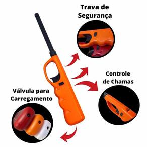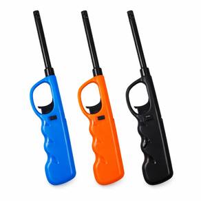 Acendedor manual para uso doméstico, com estrutura metálica e comprimento aproximado de 23 cm.