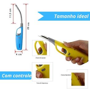Características Gerais do produto Acendedor a gás metrosultiuso cometros bico flexível e recarregável. Possui gatilho de ignição, fecho de segurança e regulador de chametrosa.