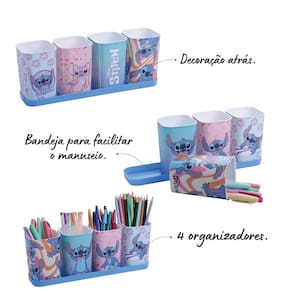 Com 4 organizadores móveis e bandeja para facilitar o manuseio, nosso porta-canetas é uma ótima opção para você organizar seus itens de papelaria para escola ou escritório de forma setorizada.