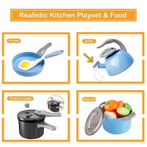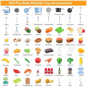 Deixe seus filhos brincarem, aprenderem e se divertirem com os acessórios de cozinha Zero Zoo Pretend Play Toy! Brincar de fingir é a maneira perfeita de fazer com que seus filhos usem sua criatividade e os ensinem sobre diferentes utensílios, alimentos, cores, etc., mantendo-os entretidos e engajados. Ao imitar atividades da vida real, nosso conjunto de utensílios de cozinha e brinquedos de cozinha inspirará a imaginação de seu filho; incentive a interação social e ajude a criar uma base sólida para o futuro, garantindo que eles se divirtam! Conjunto de brinquedos de cozinha de design exclusivo Design Zero Zoo, conjunto de churrasco, conjunto de fast food, garrafas de especiarias, brinquedos, óleo, molho, comida cortável, comida enlatada e outros conjuntos de cozinha para crianças. Ajude as crianças a fingirem brincar de utensílios de cozinha e permita que elas se imaginem em novos papéis e criem cenários emocionantes. Vários utensílios de cozinha Escolha entre 105 peças de brinquedos e acessórios de cozinha infantis realistas! Permite que os jovens desenvolvam habilidades motoras e aprendam sobre a cozinha de forma segura e divertida. Durável e fácil de limpar Feito de plástico ABS não tóxico e durável. As bordas de cada peça são lisas, o que é adequado para crianças. Fácil de limpar. Brinquedos educativos de aprendizagem É melhor do que a TV e mais envolvente do que os livros! Permita que as crianças sejam criativas e mergulhem em sua imaginação, alimentadas por utensílios de cozinha interativos e brinquedos gastronômicos. O conjunto de utensílios de cozinha para crianças inclui 105 peças de acessórios: conjunto de utensílios de cozinha: panela de pressão, panela de sopa, frigideira, chaleira, tampa de panela Conjunto de utensílios de cozinha: peneira de macarrão, picador de pizza, peneira, espátula angular, espátula, colher Conjunto de churrasco: forno, clipe, palito de churrasco, comida rápida: hambúrguer, bebida, batata frita, pipoca, waffle, sanduíche duíche, cachorro-quente Outros alimentos: ovo frito, ovo, pimenta verde, tomate Utensílios de mesa: faca de mesa, garfo, colher, prato, tigelas Outros acessórios de cozinha: tempero, faca -?Brinquedo completo para cozinhar e churrasco Conjunto?Cada conjunto de cozinha vem com 105 peças de brinquedos de cozinha fingidos divertidos e envolventes, inclui conjuntos de panelas e frigideiras, chaleira, tigelas, pratos, pauzinhos, utensílios de cozinha de brinquedo, conjunto de churrasco, conjunto de facas, alimentos e vegetais enlatados, conjunto de fast food e muito mais para proporcionar horas infinitas de diversão -?Torne o aprendizado infinito divertido?Nosso conjunto de brinquedos de cozinha fingida incentiva seus filhos a usarem a imaginação e criatividade enquanto os ensina sobre diferentes utensílios de cozinha, cores e alimentos e ajuda a promover o reconhecimento de cores, a coordenação olho-mão, aprendizado inteligente e aprenda mais sobre culinária. Perfeitos para cozinhar, fingir e interpretar papéis de chefs -?Material seguro e resistente?Nossos conjuntos de utensílios de cozinha de brinquedo para cozinha foram feitos de materiais ABS, são resistentes a quedas, fáceis de limpar, sem BPA ou materiais agressivos, para garantir que sejam seguros e resistentes para as brincadeiras diárias. Nosso conjunto de facas não é fácil de quebrar, pois é seguro e feito para lidar com o espaço diário de crianças -?Conjunto de brinquedos de cozinha realista e comida cortável?O conjunto de cozinha realista incentiva a imaginação, destreza e brincadeiras criativas. Ensina seus filhos a serem os pequenos ajudantes da mãe. A chaleira pode ser enchida com água e o bico pode ser retirado. Dê ao seu filho um presente que cria inúmeros momentos felizes! -?Garantia de satisfação?Presente infantil perfeito para aniversários, feriados, Natal, Ano Novo, Ação de Graças, Páscoa e qualquer outra ocasião. Proporcionar uma experiência de 100% de satisfação é nossa principal prioridade para nossos clientes. Sinta-se à vontade para nos enviar uma mensagem por meio de “ com os vendedores” se os produtos não atenderem às suas expectativas. As comemorações começam no Zero Zoo!