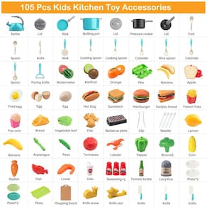 Acessórios de brinquedo de cozinha Zero Zoo, 105 unidades para crianças com comida para brincar