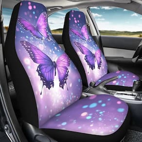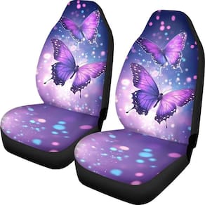 TOADDMOS Conjunto de capas de assento dianteiras femininas com brilho roxo borboletas, cobertor elástico para sela, protetores de assento de balde automotivo, interior de carro automotivo - Incluído no pacote: 2 x capas de assento concha dianteiras - Feito de tecido de microfibra de poliéster de alta qualidade - super macio, respirável, confortável, resistente ao desgaste, fácil de limpar, uso nas quatro estações - Apresenta designs inovadores e cores vibrantes, adicionam um toque de exclusividade e alegria quando você está dirigindo. Proteja seus assentos de derramamentos, manchas, rasgos, desbotamento e pelos de animais de estimação, deixe seu carro ganhar um novo visual - Projetado para instalação rápida e fácil na maioria dos carros e assentos estilo SUV Bucket - sem necessidade de ferramentas. O sistema de suporte elástico e fixação garante um ajuste universal confortável e seguro na maioria dos assentos padrão de carros e SUV - Não deve ser utilizado em assentos com airbags integrados, cintos de segurança ou apoios de braço