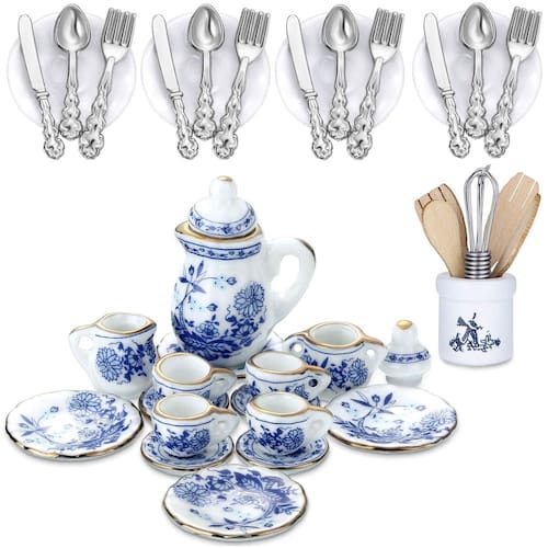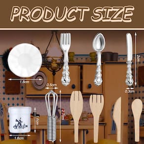 Características: Ocasiões aplicáveis: esses requintados utensílios para bater ovos em miniatura, pratos em miniatura, facas, garfos, colheres e mini xícaras de chá são clássicos atemporais, adequados para a decoração da cozinha, sala de jantar, sala de estar, restaurante, bar e outras áreas da casa de bonecas. Presente adorável: os acessórios de cozinha da casa de bonecas são ótimos presentes de Natal, Ano Novo, aniversário, outros feriados, etc. As pessoas ficarão felizes em receber esses conjuntos de miniacessórios para sua linda boneca, adicionando mais horas de diversão para elas. Especificações: Cor: conforme mostrado na figura Material: porcelana, madeira, metal Tamanho: conforme mostrado na figura O pacote inclui: 37 x Acessórios de cozinha Dollhouse Aviso quente: Adequado para pessoas com mais de 12 anos de idade. Peças pequenas, mantenha-as afastadas de pessoas com menos de 3 anos para evitar o risco de asfixia. - Ocasiões aplicáveis: esses requintados utensílios para bater ovos em miniatura, pratos em miniatura, facas, garfos, colheres e mini xícaras de chá são clássicos atemporais, adequados para a decoração de cozinha, sala de jantar, sala de estar, restaurante, bar e outras áreas da casa de bonecas - Presente adorável: os acessórios de cozinha da casa de bonecas são bons presentes de Natal, Ano Novo, aniversário, outros feriados, etc., as pessoas ficarão felizes em compre este conjunto de acessórios de miniboneca para sua linda boneca, adicionando mais horas de diversão para ela. Detalhes do tamanho: o conjunto de pratos e talheres é aproximadamente 1 x 1 x 0,2 polegadas/2,54 x 2,54 x 0,5 cm, e o conjunto de utensílios em miniatura da casa de bonecas é de aproximadamente 1,7 x 0,6 x 0,6 polegadas/4,31 x 1,52 x 1,52 cm, o tamanho do bule é de aproximadamente 2,6 x 2 x 3,4 cm/1 x 0,8 x 1,3 polegadas, o tamanho adequado pode combinar com a maioria das bonecas, bons acessórios para bonecas - Material confiável: adotando porcelana de qualidade, madeira, metal como material, os acessórios de cozinha da casa de bonecas são seguros, inodoros e duráveis o suficiente para você usar. Você pode guardar os acessórios de cozinha em miniatura atemporais por muito tempo - O que você receberá: você receberá 4 peças de mini pratos, 4 peças de minifacas, 4 peças de mini garfos, 4 peças de mini colheres, conjunto de 15 peças de mini xícaras de chá e 1 conjunto de batedor de ovos que inclui 6 utensílios, grande quantidade para atender às suas necessidades de decoração