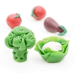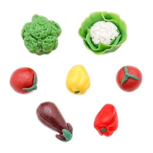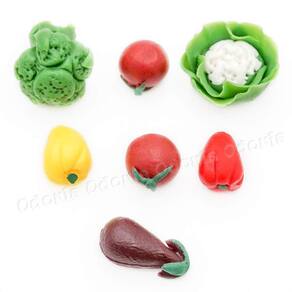 -Quantidade: 1x berinjela de casa de bonecas, 2x pimentão/tomate, 1x brócolis/couve-flor