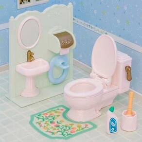Acessórios e Móveis - Sylvanian Families - Toalete - Epoch Magia: Sylvanian Families são adoráveis personagens animais distintos com charmosas e bonitas casas, móveis e acessórios. Eles vivem, trabalham e brincam na idílica e maravilhosa terra de Sylvania. Detalhes: • O Conjunto de Toalete vem com vaso sanitário, pia, produtos de limpeza, penico e tapetinho • É possível acionar a descarga puxando a alavanca do vaso sanitário e o papel higiênico pode ser desenrolado • Os bonecos podem sentar no vaso sanitário (bonecos vendidos separadamente) • O assento do penico pode ser acoplado ao vaso sanitário para treinar os bebês para usá-lo • A pia inclui espelho, cuba e porta-papel higiênico. Há até um espaço para guardar o penico • Você pode usar o limpador e a escova para limpar o vaso sanitário Informações: • Produto: Conjunto Toalete Sylvanian Families • Marca: Epoch Magia • Coleção: Sylvanian Families • Tipo: Acessórios e Móveis de Figuras e Bonecas • Categoria: Conjuntos, Cenários e Casinhas • Conteúdo: - 01 Vaso sanitário - 01 Pia - 01 Assento de penico - 01 Escova para vaso sanitário - 01 Porta-escovas - 01 Limpador de vaso sanitário, - 01 Tapete • Recomendação: para crianças a partir de 03 anos de idade Especificações: • Referência: 5740 • Código de Barras: 5054131057407 • Embalagem (C x A x L): 11 x 12.8 x 06 cm • Embalagem (Peso): 0.082 kg • Material / Composição: Plástico e Tecido • Registro: 004530/2019 • Certificado: Órgãos Autorizados - OCP´S (Organismos de Certificação de Produtos) Aviso: • As imagens são meramente ilustrativas • Os pesos, tamanhos e medidas são aproximados • As cores e estampas dos produtos podem ter variações • As informações são de responsabilidade do fabricante ou fornecedor