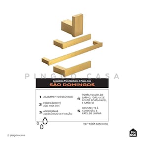Os acessórios para banheiro são indispensáveis para a comodidade e facilidade no dia a dia. Pensando mais uma vez no seu conforto, a Pingoo.casa produziu uma nova linha de Acessórios Para Banheiro 4 Peças Inox São Domingos.