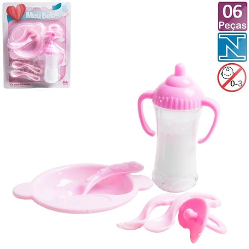 Acessórios Para Boneca 06 Peças Transforme a brincadeira de cuidar da sua boneca em um momento ainda mais divertido e completo com o Kit de Acessórios Meu Bebê Refeição – 6 peças. Perfeito para crianças que adoram brincar de casinha e cuidar dos seus bebês de brinquedo, esse conjunto traz tudo que é necessário para a hora da refeição. O kit é composto por pratinho, colher, garfinho, mamadeira, copinho e babador — tudo colorido, seguro, leve e com acabamento pensado especialmente para as mãos dos pequenos. Além de estimular a imaginação, promove o desenvolvimento da coordenação motora e o cuidado afetivo. Seja pra presentear ou pra complementar a coleção, esse é aquele acessório que não pode faltar na diversão da criançada. Especificações: Marca : ARK Tipo de material : Plástico E Corante Líquido (Não Comestivel) Cores ou Estampa : Rosa E Branco Dimensões do Produto : 23 X 4 X 18 CM Peso Bruto (Gramas) : 0.111 O que vem na embalagem 1 Acessórios Para Boneca 06 Peças MEU Bebê Refeição Marca: Não Informado