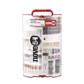 - Indicado para micro retíficas - Ideal para atividades, como: polir, lustrar, cortar, lixar, debastar, gravar entre outros - Prático, conta com estojo que mantém as peças organizadas, além de possibilitar a realização de diferentes tipos de trabalho - Composto por 257 peças, sendo: 1 abrasivo 1 Chave para micro retífica 4 Cilindros de feltro 81 Discos de corte 44 Discos de lixa 3 Escovas de latão 3 Escovas de inox 3 Escovas de nylon 2 Hastes para disco de corte 1 Haste para disco de feltro 4 Hastes para lixa cilindro 3 Hastes para roda de borracha 1 Haste para roda de pano 10 Limas rotativas 10 Limas rotativas diamantadas 50 Lixas cilindro 1 Pasta para polimento 4 Pinças para micro retífica 1 Ponta com feltro 10 Pontas montadas 6 Rebolos de carbureto de silício 6 Rebolos de óxido de alumínio 2 Rodas de borracha 4 Rodas de feltro 1 Roda de lixa 1 Roda de pano Marca: Não Informado