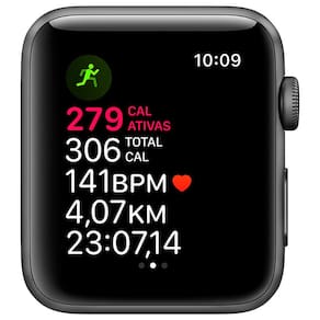 Monitore sua frequência cardíaca e receba notificações se ela estiver muito alta ou baixa. Calcule seus exercícios, acompanhe e compartilhe suas atividades com os amigos. Atenda ligações, envie e receba mensagens e escute suas músicas favoritas no Apple Music*. Com o Apple Watch Series 3, você faz tudo direto do seu pulso.